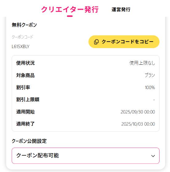 *クーポンには、運営が発行するものとクリエイターが発行するものの2種があります。