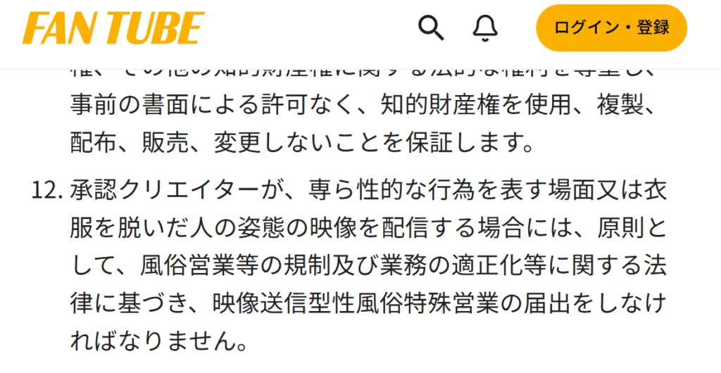 FANTUBE(ファンチューブ)では利用規約に、
