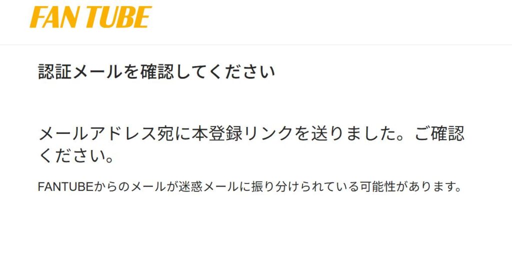すると、FANTUBE(ファンチューブ)運営局からメールが届きます。ご確認ください。